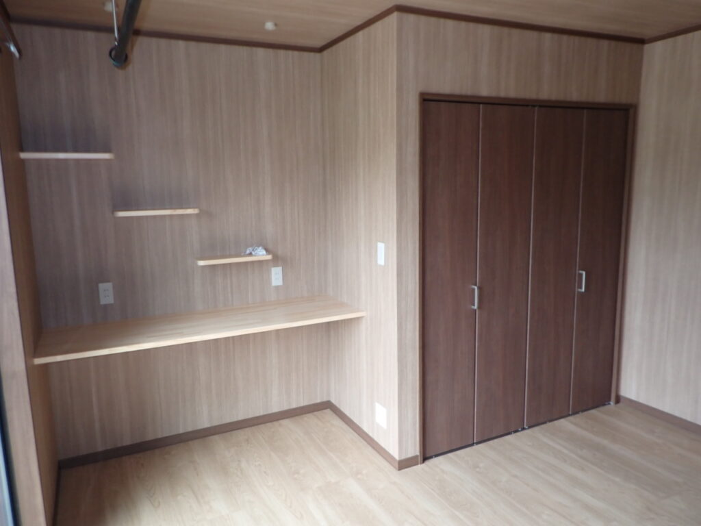 内装 いわき市リフォームはつせリフォーム福島県小名浜内装リフォームZEH子育てグリーン住宅支援事業 W様洋室内装リフォーム工事(いわき市小名浜) 2026年1月13日 2026年1月14日 床フロア工事、天井クロス工事、壁クロス工事を行いました。 各部屋、収納、照明、窓の大きさ・位置・高さなどを一つ一つ決めて工事を行いました。 子育てグリーン住宅支援事業を利用した工事で、断熱材・サッシはZEHレベルの物を使用しています。