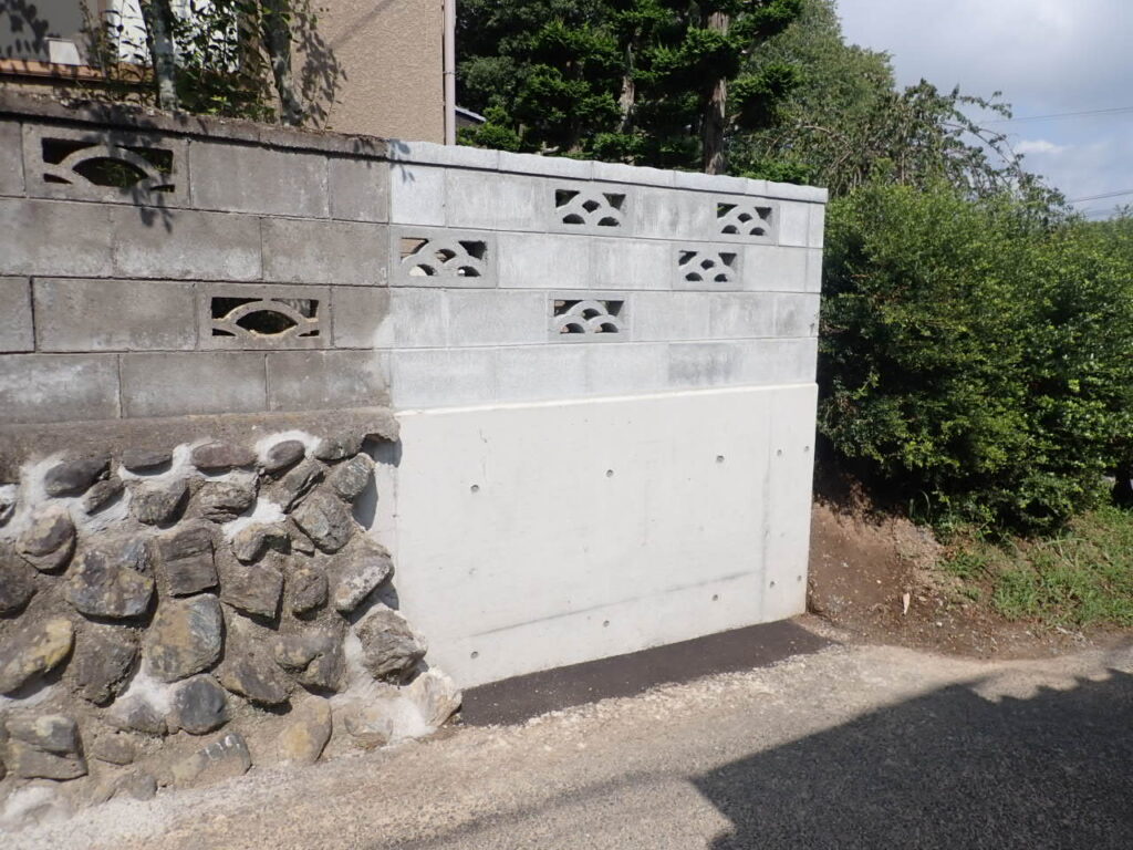 外構 いわき市リフォームはつせリフォーム福島県外構改修工事 S様外構改修工事(いわき市常磐) 2026年1月8日 2026年1月14日 敷地入口部が狭かったので既存コンクリートブロック塀を解体し、敷地入口幅を広げました。 既存コンクリートブロック塀が破損していたので、石積部をコンクリート基礎にして上部のコンクリートブロックを新規に積み直しました。 敷地入口部はコンクリート土間にしました。 刷毛目地仕上げにしたので雨の日でも滑りにくいです。 敷地裏側出入り口が土で雨の日だとぬかるんでしまうので、砕石を敷いて転圧して仕上げました。雨の日でもスムーズに行き来が出来ます。